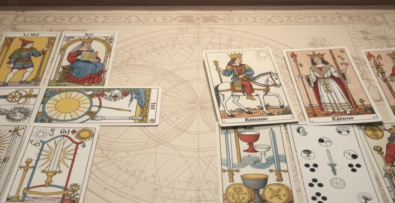 Le Tarot de Marseille représente l’aboutissement d’un processus d’épuration symbolique qui a traversé les siècles, condensant dans 78 lames la quintessence de la sagesse hermétique occidentale.